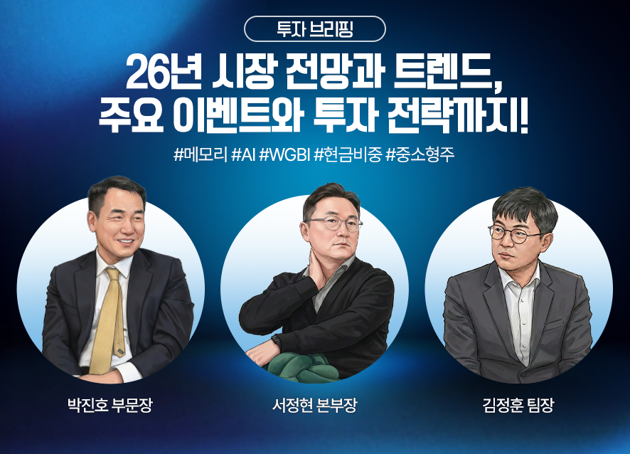 NH-Amundi자산운용의 전문가 3인이 여러분의 투자 고민을 덜어드리기 위해 준비한 ‘투자브리핑’을 선보입니다. 이번 투자브리핑에서는 2026년 증시 전망과 핵심 변화 그리고 주목해야 할 섹터 및 종목까지 야심 차게 준비했는데요. 새해를 맞아 그간의 포트폴리오와 투자 전략을 점검 중이라면 이번 포스팅을 놓치지 마세요!