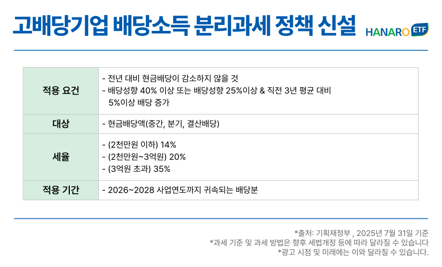 고배당 기업에 대한 배당소득 분리과세 등의 정책은 배당을 더욱 활성화하는 인센티브가 될 것으로 기대
