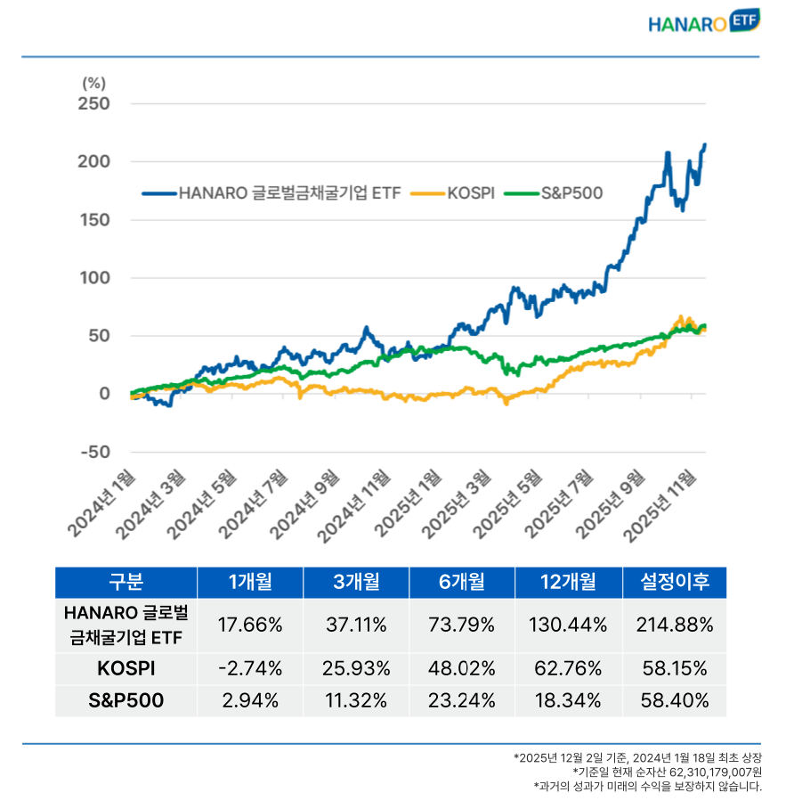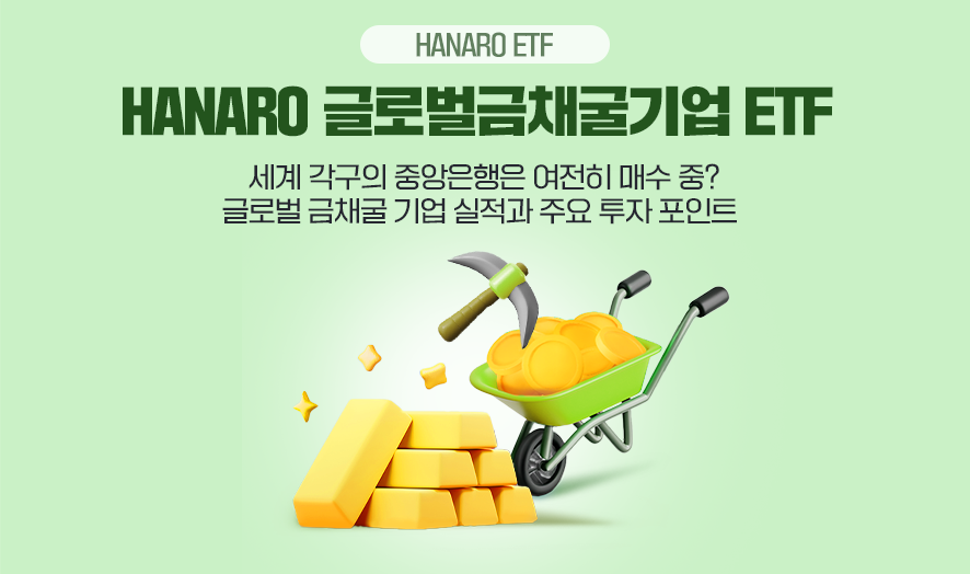한동안 조정 장세에 들어갔던 국제 금 가격이 최근 투자자들에게 다시금 상승 기대감을 모으고 있습니다. 당초 금 가격의 조정 요인은 일시적 현상에 기인했고, 물가 상승 및 경기 둔화 우려 또한 여전한 만큼, 금 투자의 상승 여력은 여전한 것으로 관측되는데요. 글로벌 중앙은행들 역시 금 보유고가 증가할 것으로 전망을 내놓았으며, 뉴몬트, 베릭, 아그니코 이글 등 주요 금 채굴 3사 또한 견조한 실적 및 주주 환원 확대 흐름을 보였습니다. 이처럼 금 투자에 대한 우호적 전망이 제기되는 가운데, 성장 모멘텀을 맞이한 금 채굴 기업에 투자하고 싶다면 HANARO 글로벌금채굴기업 ETF에 대해 자세히 알아보시기 바랍니다.
