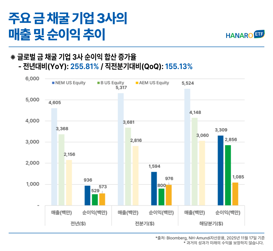 뉴몬트, 베릭, 아그니코 이글 등 주요 금 채굴 3사는 우호적인 금 가격과 운영 효율화에 힘입어 이익 규모가 급증하고 있습니다. 이를 바탕으로 배당 확대 및 자사주 매입 등 주주환원 정책을 강화하며 투자 매력을 높이는 추세입니다.