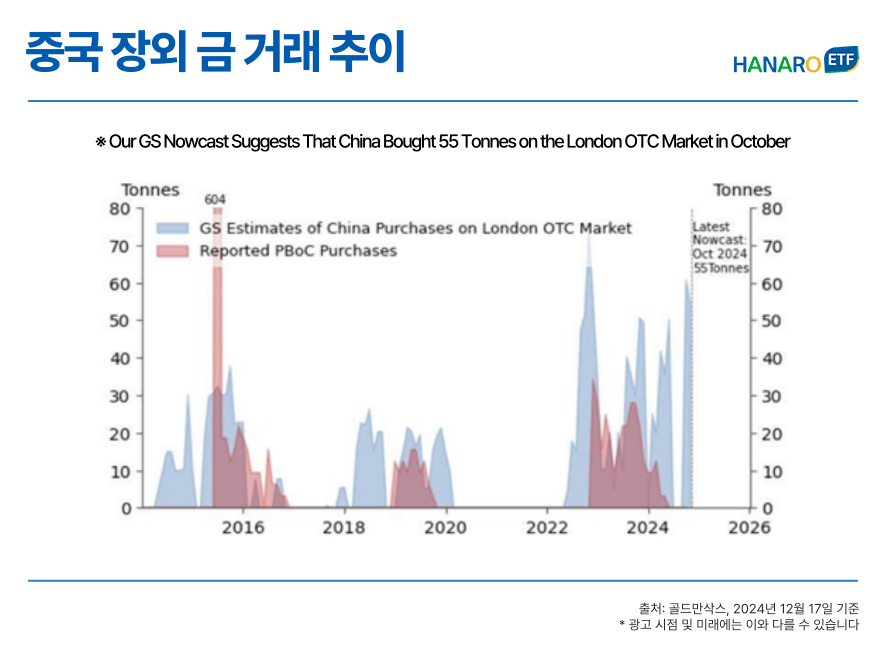 여기에 더해 ‘통계에 잡히지 않는 금 매수 물량’ 또한 주목할 점입니다. 골드만삭스는 중국 정부가 공식적인 경로 외에 장외(OTC) 시장을 통해서도 금을 사들이고 있어 실제 매입량은 공식 집계보다 훨씬 클 것으로 추정합니다. 이러한 보이지 않는 매수세 역시 금 가격을 지지하는 강력한 요인 중 하나입니다.