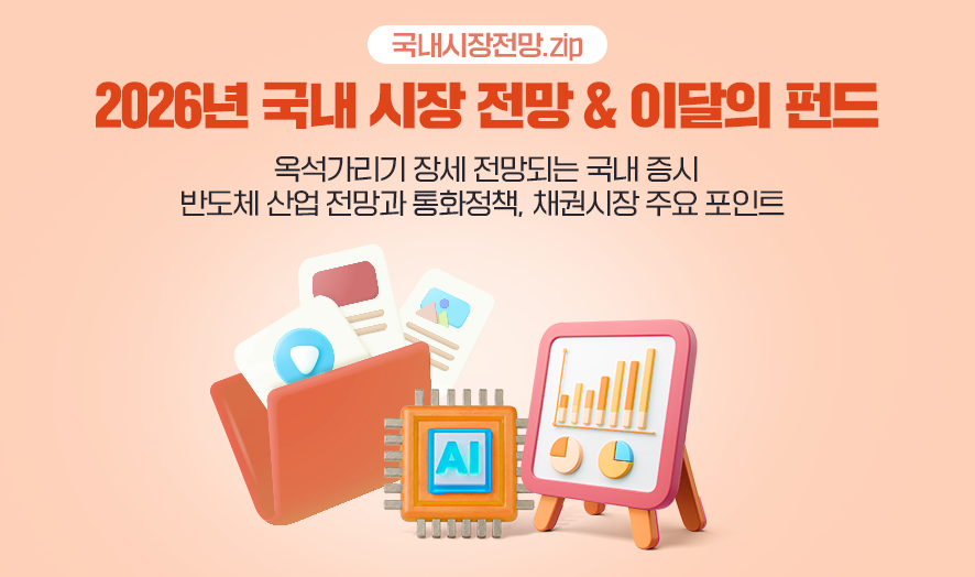 지난해 국내 증시는 역대급 상승세를 보이며 4,000P 시대를 열었지만, 한편으론 대형주 중심의 성장세라는 아쉬움도 있었습니다. 그리고 올해 국내 증시는 그간 누적된 피로감을 소화하며 옥석 가리기 장세에 진입할 것으로 전망되는데요. 지난해 성장세를 이끌었던 반도체 산업은 D램 가격 급등에 따른 실적 상승에 대해 시장 이목이 집중되고 있으며, 데이터센터 인프라 성장 기대감 또한 피어오르는 중입니다. 한편, 한국은행은 금리 인하 압력 속에서 ‘수도권 주택 가격’과 ‘환율 변동성’이라는 상충되는 변수를 동시에 신경 써야 하는 상황 속에서 경기 지표에 기반한 신중한 행보를 이어갈 것으로 예상되는데요. 이 같은 상황에 NH-Amundi 필승코리아 펀드 & 성장주도코리아 펀드는 글로벌 경쟁력을 기반으로 대한민국 산업 성장을 주도하는 주요 종목에 집중 투자하는 만큼 투자자 여러분이 관심을 가지고 살펴볼 만한 투자 선택지가 될 수 있을 것입니다.
