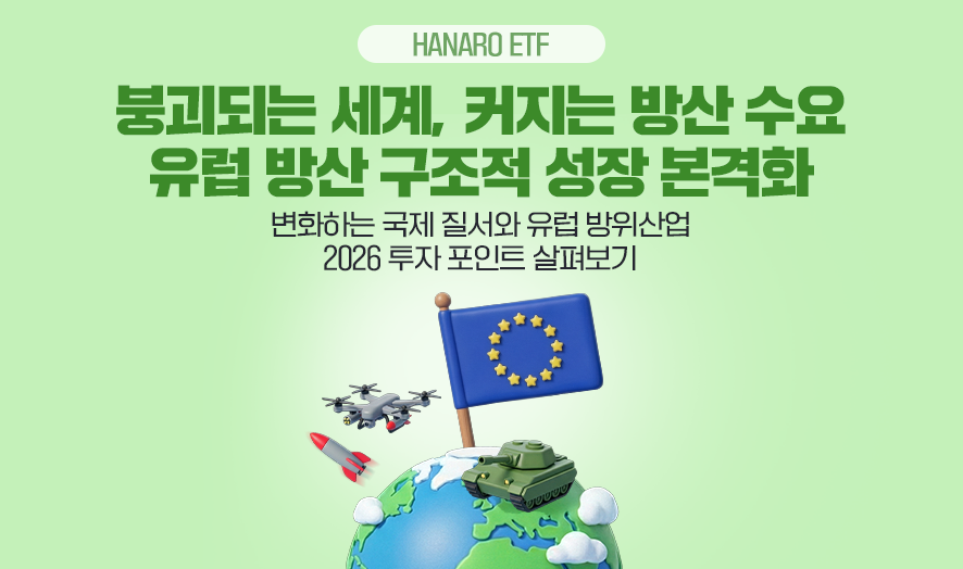지정학적 불확실성이 극에 달한 지금, 요동치는 정세 속에서도 구조적 성장 명분과 실질적 수요를 동시에 확보한 유럽방산 기업들은 단기 테마를 넘어 합리적이고 유망한 투자처로 부상할 전망입니다. 이러한 흐름 속에서 유럽 내 핵심 방산 기업에 집중투자하는 HANARO 유럽방산 ETF는 유럽 방위산업의 구조적 성장 스토리에 효율적으로 접근할 수 있는 하나의 대안이 될 수 있을 것입니다.