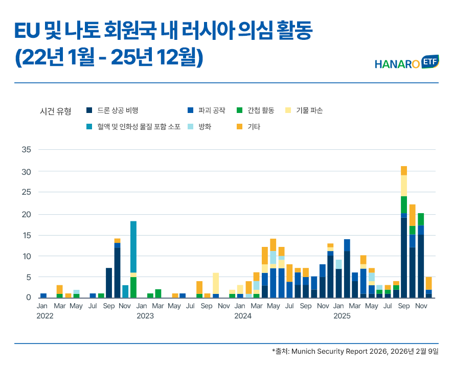 중동 분쟁과 러시아의 군사 위협, 미국 트럼프 행정부의 그린란드 영토 분쟁과 66개 국제기구 철수, 나토(NATO) 회원국을 향한 방위비 압박까지. 지정학적 리스크는 일상화되고 미국이 실리 위주의 고립주의 행보를 이어가는 가운데, 글로벌 안보 패러다임이 변화하고 있습니다. 😮 지난 2월 개최된 뮌헨 안보회의(MSC) 역시 미국 중심 안보 질서의 붕괴를 뜻하는 'Under Destruction(붕괴되는 세계)'을 공식 화두로 던지며 이러한 위기감을 분명히 드러냈는데요.
